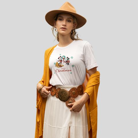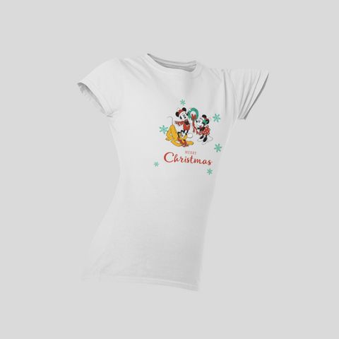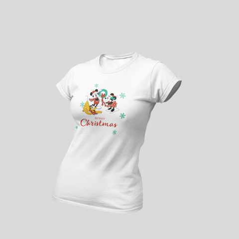 Entre no clima natalino com muito estilo e diversão! Esta linda camiseta branca traz uma estampa exclusiva com Mickey, Minnie e Pluto em um momento cheio de alegria e espírito natalino. Com a frase “Merry Christmas” em destaque e detalhes de flocos de neve, é perfeita para celebrar o Natal com conforto e charme.