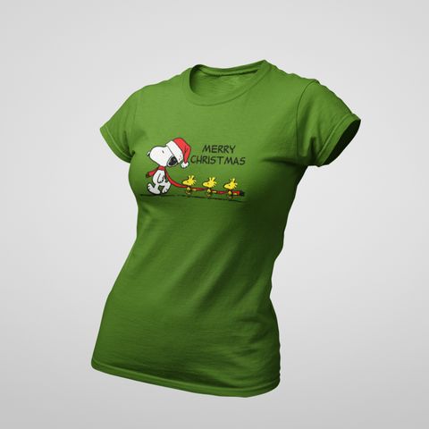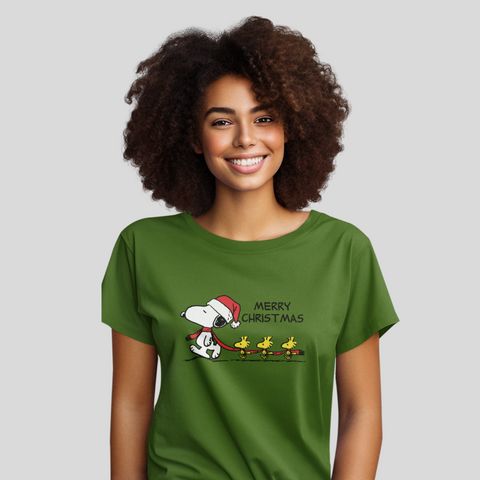 Entre no espírito do Natal com muito estilo e conforto! Esta charmosa camiseta verde traz o adorável Snoopy usando gorro de Papai Noel, acompanhado de seus inseparáveis amigos amarelinhos, em uma estampa fofa e divertida com a mensagem “Merry Christmas”.