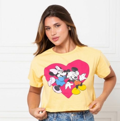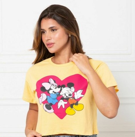 Espalhe charme e diversão com este cropped amarelo super fofo, trazendo o casal mais icônico da Disney: Mickey e Minnie!